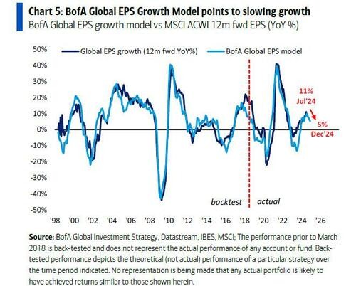 考慮到全球製造業 PMI 水平下滑、美債收益率曲線長期倒掛的影響等,Hartnett 預計,全球企業每股收益的同比增速將從 7 月的 11% 降至 12 月的 5%,其中 7 月是拐點。