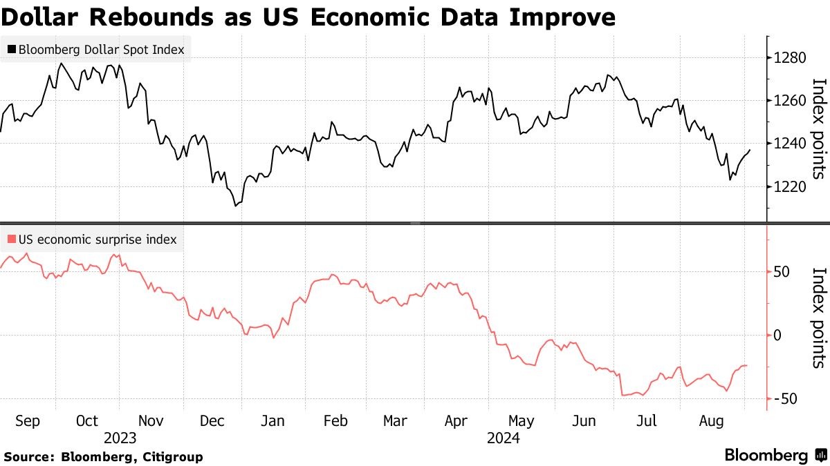 一些外匯交易員仍在質疑美國經濟增長和通脹數據是否已放緩到足以促使美聯儲在當地時間 9 月 17 日至 18 日的會議上宣佈降息 50 個基點的程度。近日公佈的一系列包括 GDP 數據上修在內的暗示美國經濟 “軟着陸” 越來越有可能實現的經濟數據,並且市場降息預期從 7 月非農數據公佈後的 125 個基點降低至 100 個基點附近,乃帶動美元大幅反彈的兩大核心驅動力,推動美元指數連續 5 日上揚。