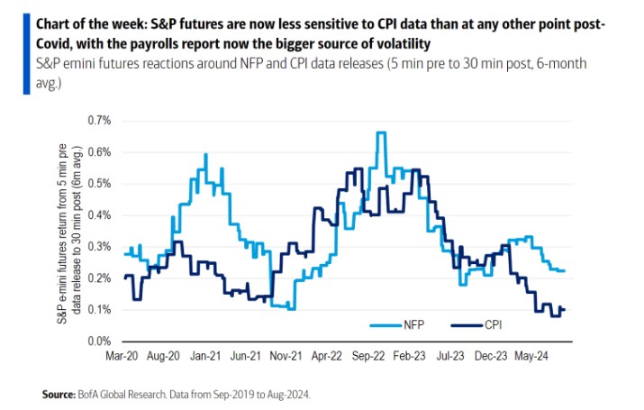 美國銀行分析師在 9 月 2 日的一份報告中表示,非農就業報告 “重新成為股市最看重的數據”。 標普 500 指數的期貨合約對美國就業報告比通脹數據更敏感。