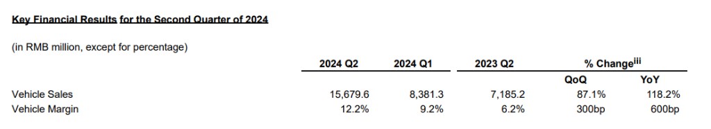 由於持續的成本優化,我們的車輛毛利率在二季度提高到了 12.2%。我們將繼續專注於高效的研發和基礎設施投資,利用大眾市場的增長潛力,採取靈活的市場策略,並不斷優化我們的產品組合。我們相信這些努力將在未來帶來毛利和成本效率的穩步提升。