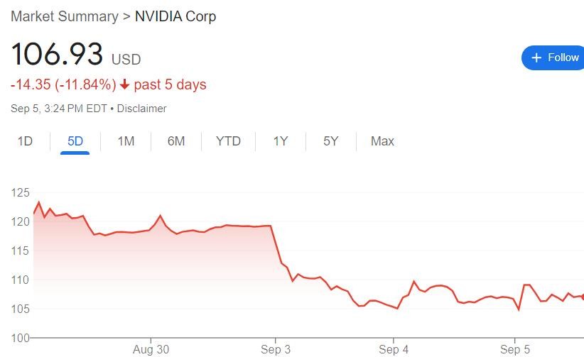 9 月首個交易日本週二,英偉達股價收跌 9.5%,市值一日縮水將近 2800 億美元,創美股個股市值降幅之最。華爾街見聞此後提到,英偉達股價在發佈財報後股價下跌,凸顯投資者對該個股估值過高、收入增速的指引放緩,以及對整體 AI 芯片投資狂潮可持續性等多重因素的擔憂。