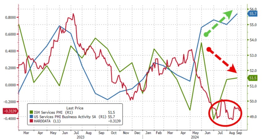 The U.S. ISM non-manufacturing sector has seen mild expansion for two consecutive months, while the Markit services sector has reached its highest level in nearly two and a half years