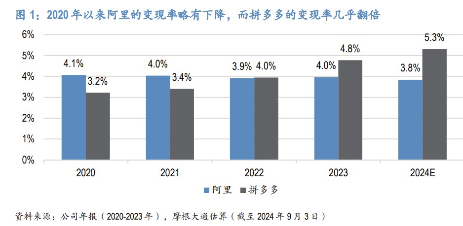 摩根大通则表示拼多多新策略变现对阿里影响有限,因为拼多多的新策略主要聚焦于商户生态而非消费者端;加之阿里巴巴和拼多多之间的变现率差异较大,即使淘宝的变现率有所提高,对商家而言可能仍然是成本最低的渠道。