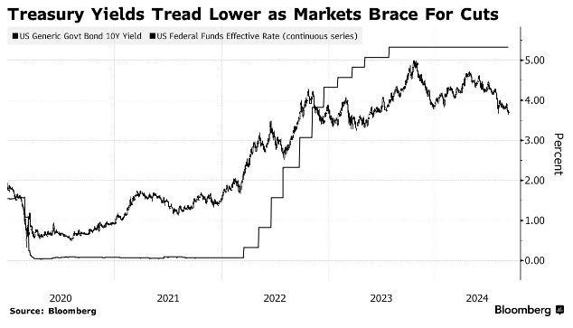 德意志銀行警告市場對美聯儲降息的預期過於樂觀,預計波動性將上升。美債市場因降息押注而加速運轉,10 年期美債收益率已連續 4 個月下跌。德銀預計美聯儲將降息 6 次,低於市場預期的 9 次,可能導致市場大幅逆轉。分析師預測到 2025 年,10 年期美債收益率將達到 3.73%。