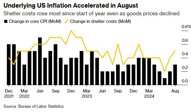 由於住房和旅遊價格上漲,美國八月份基本通脹意外上升,削弱了美聯儲下週大幅降息的可能性。