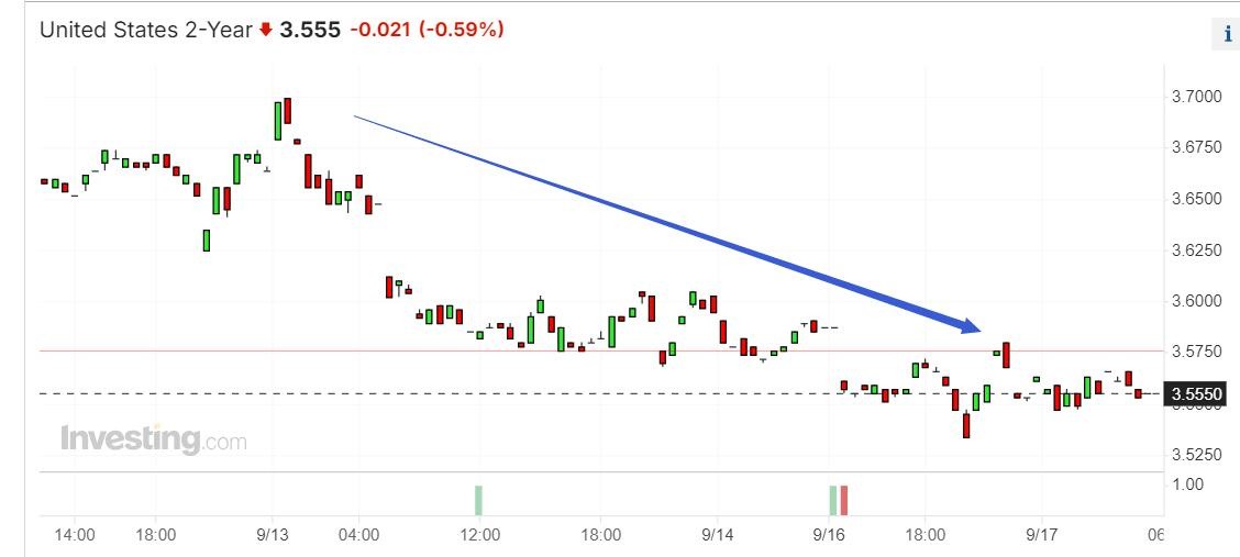 倫敦證交所 LSEG 的計算數據顯示,週一的聯邦基金利率期貨價格已反映出,美聯儲本週三降息 50 個基點的可能性接近 60%。對利率敏感的兩年期美債收益率在週一美股盤前曾下破 3.53%,刷新上週三所創的 2022 年 9 月以來盤中低位。