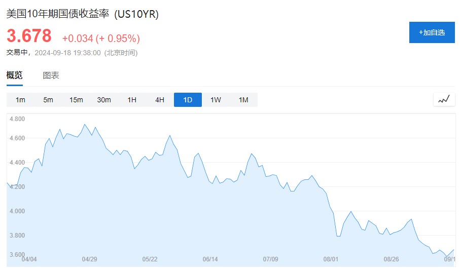 美聯儲降息後,美債收益率集體下行,美聯儲主席鮑威爾隨後舉行新聞發佈會,迎來一波 V 型反轉,長期美債的收益率升幅居首。