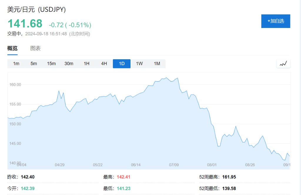 美聯儲降息後,美元兑日元盤中跌超 1%