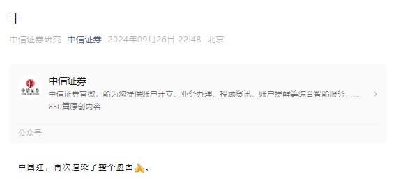 9 月 26 日,中信證券官方公眾號發佈文章,標題就一個字《幹》。