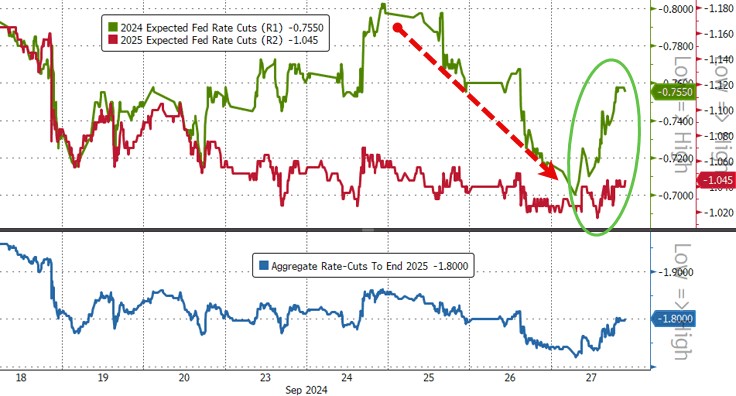 美 PCE 通脹降温堅定美聯儲降息信心,但美股午後下行,英偉達一度跌近 4%。中國刺激政策驅動中概指數漲 4%,蔚來漲近 13%,泛歐股指和德股連續兩日新高,奢侈品股再漲。道指、標普和納指均三週連漲,兩隻聚焦中國 ETF 創史上最佳單週漲幅。美元連跌四周至 14 個月最低,金銀衝高回落,美油周跌 4%。日元跌穿 146 後迅速反彈,最高漲近 2% 上逼 142。離岸人民幣一度上逼 6.96 元,較日低不足 7 關口最高振幅近 440 點,交投 16 個月最高。