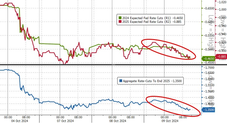 美聯儲 9 月 FOMC 會議摘要暴露大幅降息分歧,一些決策者認為有理由只降息 25 個基點,美聯儲副主席傑斐遜認為就業市場正有序降温,達拉斯聯儲主席洛根擔心通脹頑固,均繼續打壓市場對 11 月大幅降息的押注,美債收益率和美元攜手走高。