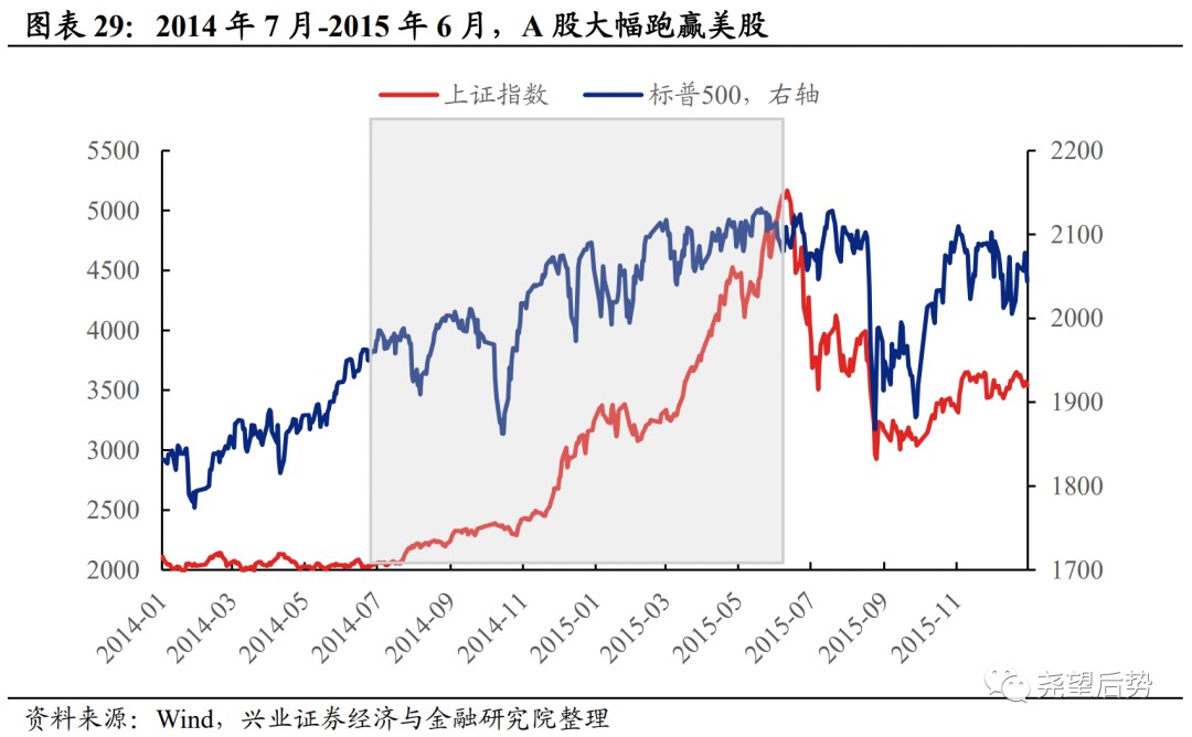 三、第三轮:2014 年 7 月-2015 年 6 月,A 股大牛市 vs “平平无奇” 的美股