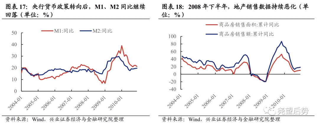 尽管政策已然放松,但彼时经济仍在恶化,导致市场对政策刺激 “将信将疑”。GDP 增速持续下滑,货币政策虽然已经转松,但货币供给增速仍在放缓,特别是 M1 增速出现较大幅度下降,房地产行业在前期加息升准影响下,销售数据快速恶化,开发资金全面紧缩,房屋新开工面积同比增速从年初以来持续下降,到下半年房地产固定资产投资增速也开始下滑,等等。所有证据无不让市场怀疑可能经历了一次 “假放水”。
