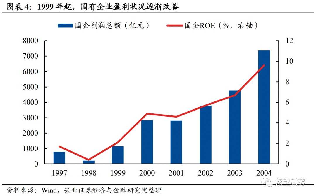 此外,国企开始了 “三年脱困” 战役。1997 年 7 月朱镕基总理在辽宁考察国有企业时强调,“为实现党中央、国务院确定的使大多数国有大中型骨干企业到 20 世纪末初步建立现代企业制度的目标,必须坚定信心,扎实工作,用三年左右时间使大多数国有大中型亏损企业走出困境,这是今后几年经济工作的重要任务” 1997 年 9 月,党的十五大报告指出:“力争到本世纪末大多数国有大中型骨干企业初步建立现代企业制度,经营状况明显改善,开创国有企业改革和发展的新局面”。就此确立了大多数国有大中型企业改革和脱困的三年目标。