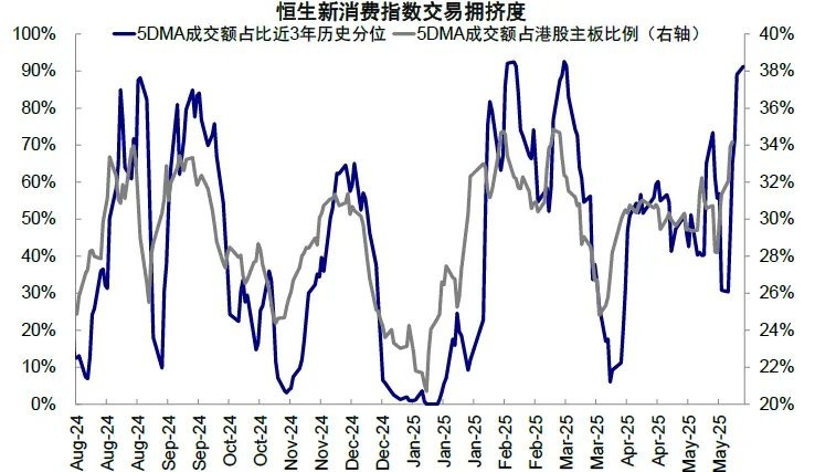 图表 15:新消费板块交易拥挤度达到近三年 90% 历史分位