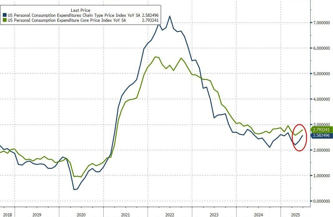 The Federal Reserve's favorite inflation indicator unexpectedly rebounded! The U.S. core PCE price index in June rose 2.8% year-on-year, reaching a new high in over six months