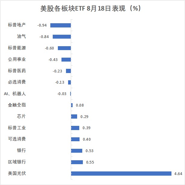 - 區域銀行 ETF 收漲 0.55%,領跑美股行業 ETF,網絡股指數 ETF、半導體 ETF、可選消費 ETF、銀行業 ETF 至少漲 0.4%,而能源業 ETF 跌 0.6%。