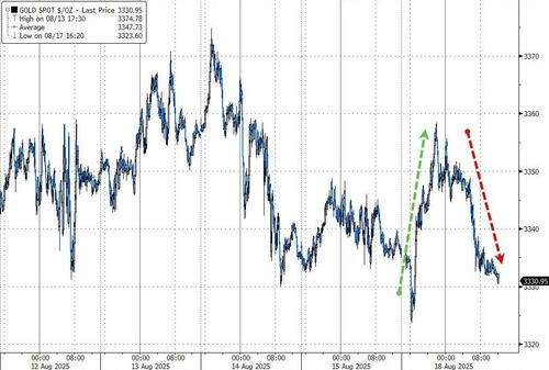 - 亞市早盤刷新 8 月 1 日以來低位時,紐約黃金期貨跌至 3368 美元,日內跌與 0.4%,現貨黃金跌至 3323.6 美元,日內跌近 0.4%,亞市早盤轉漲後歐股盤前刷新日高時,期金漲至 3403.6 美元,日內漲逾 0.6%,現貨黃金漲至 3358.45 美元,日內漲近 0.7%,美股早盤幾度轉跌,午盤基本處於跌勢。