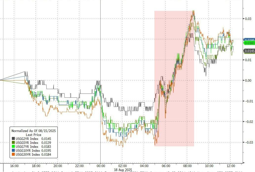 本週一市場主要關注美國總統特朗普與烏克蘭總統澤連斯基在白宮的 “特澤會”,兩人先面對面會談,此後其他歐洲領導人蔘與,進行多方會晤。金融市場反應相對平靜。