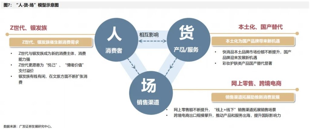 (2)产业驱动力【“人-货-场”模型】:消费模式的系统性变迁,包括Z世代、国潮与跨境新机遇;