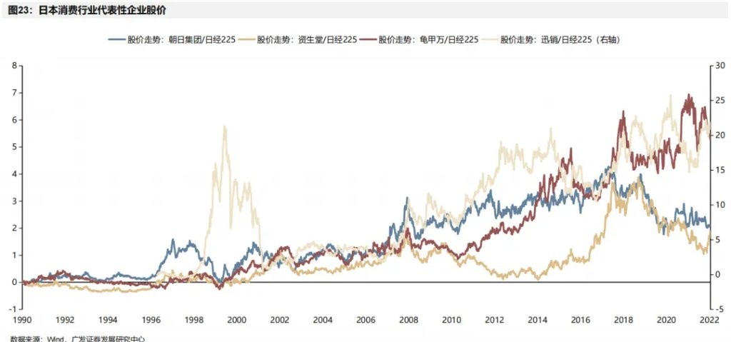 据Wind统计,聚焦功能型、便利型与悦己型品类的日本企业,例如朝日(啤酒)、资生堂(美妆)、龟甲万(酱油)、迅销(优衣库)均凭借高性价比产品策略穿越经济周期,股价呈现稳健上行态势,印证弱周期下的结构性韧性。