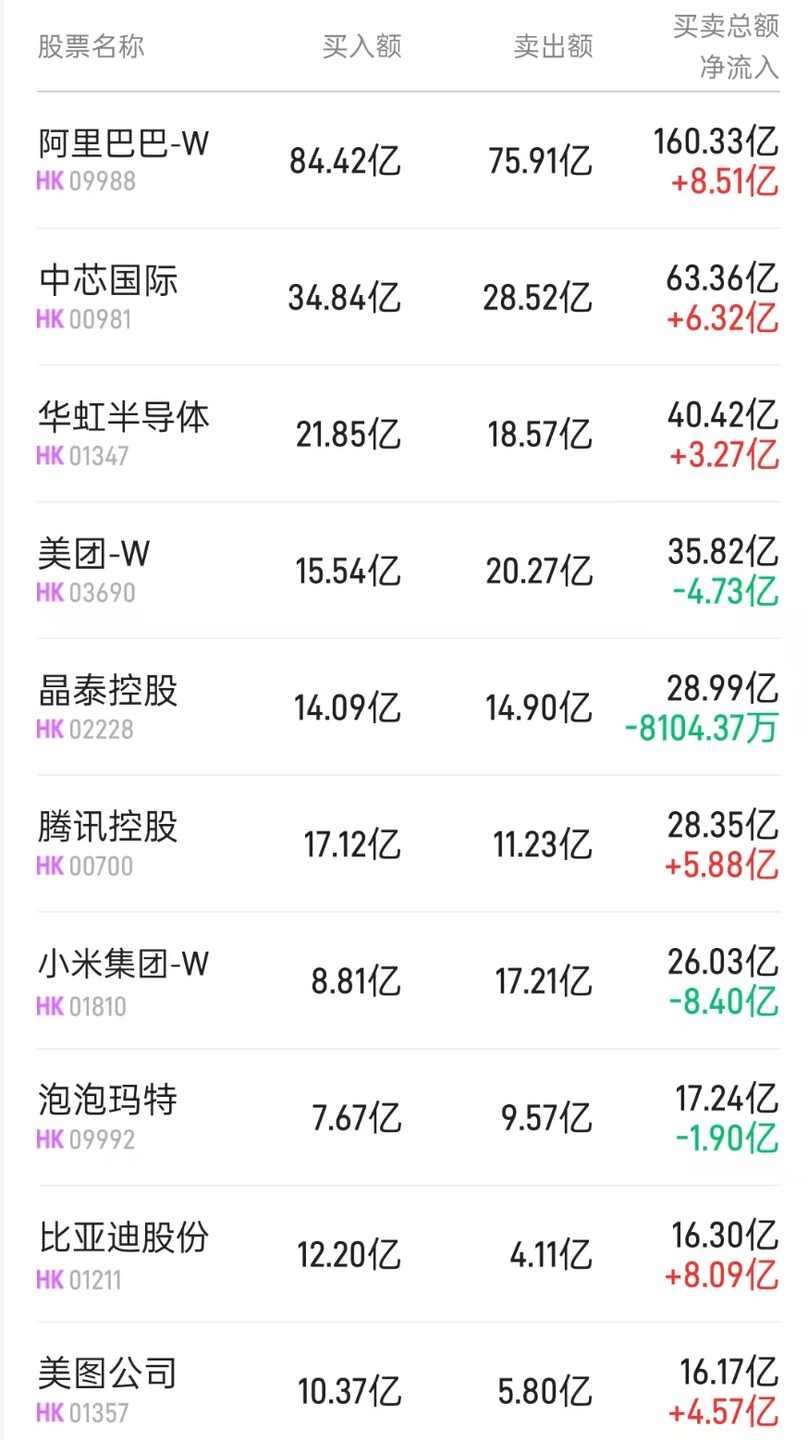 阿里巴巴-W(09988) 獲淨買入 49.2 億港元。消息面上,東方證券指出,阿里巴巴本季度兩大業務線表現均十分亮眼。AI 雲增量帶動雲業務環比提速&CAPEX 投入再創新高;外賣業務虧損可控,同期帶給主站協同作用。外賣投入不僅換來單量及份額明顯增長,同期已看到外賣協同效應在用户和 CMR 增長的反饋。該行認為公司雲提速代表公司 AI 新週期已開始,國內海外 AI 算力需求共振疊加公司維持高額算力及雲基建投入;公司外賣策略執行效率高,投入效果好於預期。