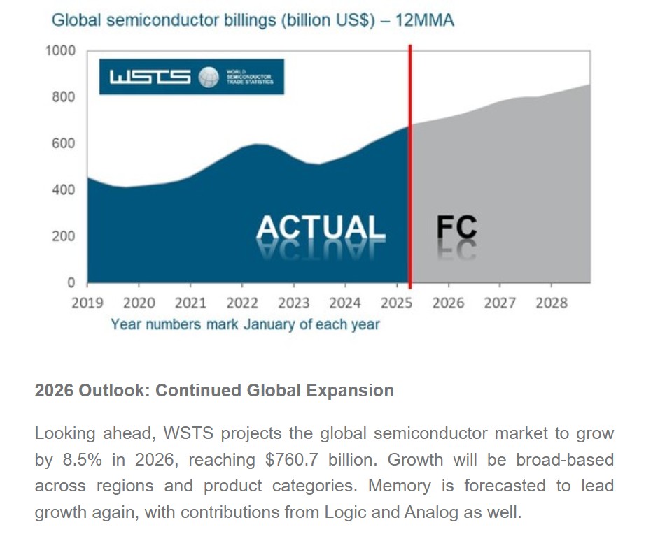 Undoubtedly, the recently announced contract reserve of $455 billion by global cloud computing giant Oracle, which far exceeded market expectations, along with the strong performance and future outlook announced last week by global AI ASIC chip "super giant" Broadcom, has significantly strengthened the "long-term bull market narrative" for AI GPU, ASIC, and HBM and other AI computing infrastructure sectors. The AI computing demand driven by generative AI applications and AI agents at the inference end can be described as "vast as the stars and the sea," and is expected to drive the artificial intelligence computing infrastructure market to continue showing exponential growth. The "AI inference system" is also considered by Jensen Huang to be the largest source of future revenue for NVIDIA Looking ahead at future trends, according to chip market research reports from authoritative institutions such as Wall Street financial giant Goldman Sachs and the World Semiconductor Trade Statistics (WSTS), under the unprecedented wave of global AI investment, chip stocks may still be one of the brightest-performing technology sectors in the U.S. stock market from a long-term investment perspective.
