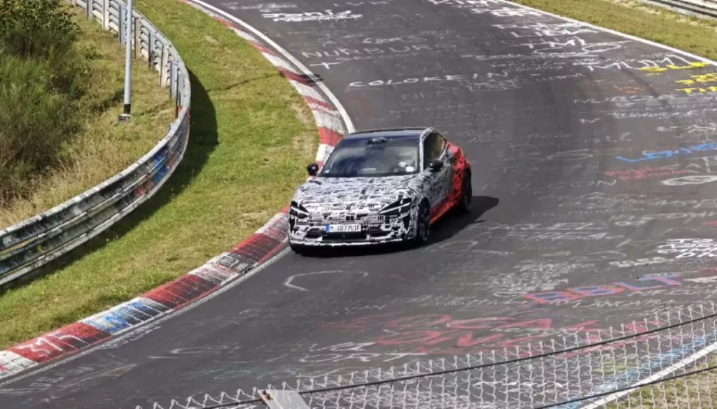 Another angle of the image shows that the front and rear wheel arches of the test vehicle have been widened, presumably to better accommodate wider tires.