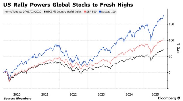 強勁的人工智能需求和美聯儲進一步降息的預期推動全球股市創下新高,美國四大基準指數同步飆升至歷史高點。克雷格認為,鑑於科技巨頭估值過高,任何盈利挫折都可能引發拋售,正如四月份市場暴跌時所顯現的那樣。