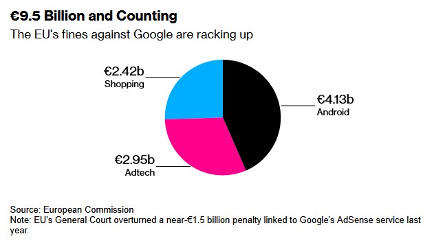 9 月 5 日,歐盟委員會宣佈對谷歌處以 29.5 億歐元罰款,原因是該公司在廣告技術市場中濫用主導地位,損害競爭環境。歐盟方面表示,谷歌被指控在在線廣告市場中濫用權力,通過優先推廣自身服務,損害了競爭對手、廣告商和在線出版商的利益,從而損害了市場公平競爭環境。