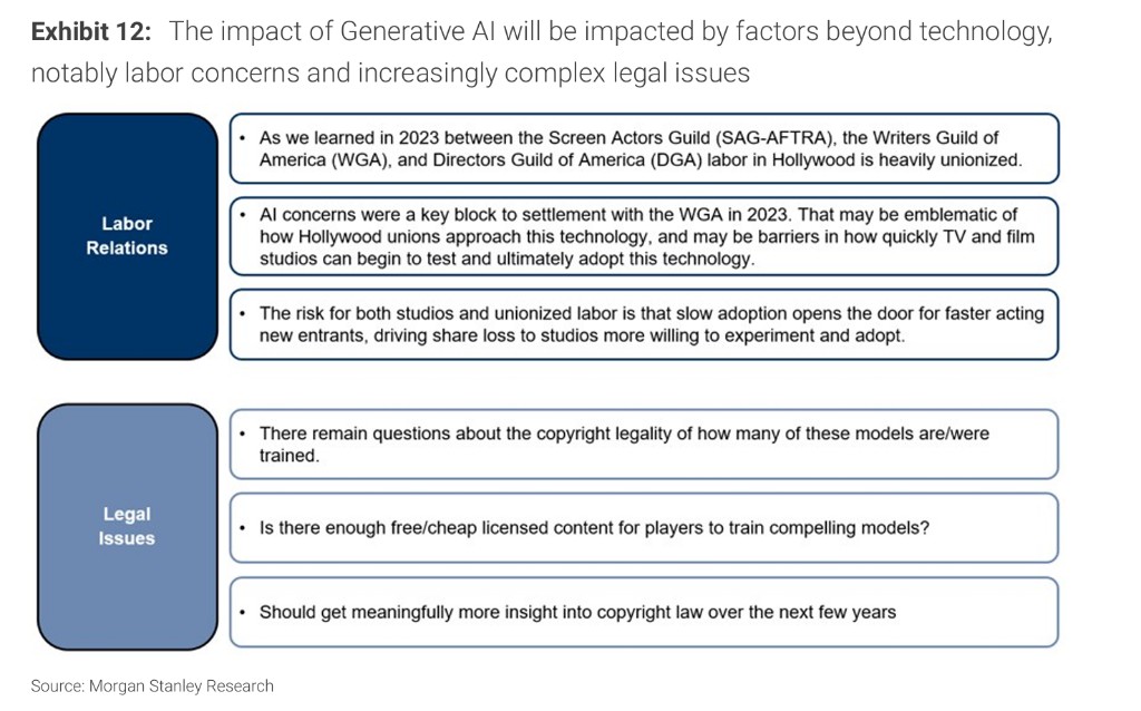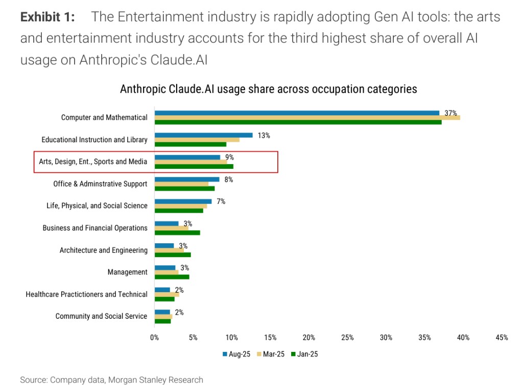大摩表示,大型媒體公司利用 AI 優化內容推薦、降低製作成本和提升廣告效率,預計可將節目製作費用降低約 10%。在此背景下,無法被 AI 複製的體驗式資產,如主題公園和現場娛樂,以及稀缺的頂級體育賽事版權,其價值將進一步凸顯。