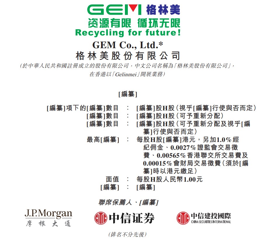 GEM Co., Ltd. has submitted a listing application to the Hong Kong Stock Exchange, with JP Morgan, CITIC Securities, and CITIC Construction Investment International as its joint sponsors. GEM is a leading enterprise in the global new energy materials manufacturing industry, focusing on the recycling of key metal resources and lithium-ion batteries. The company ranks first in China for the recovery of nickel, cobalt, and tungsten resources, and is among the top producers of MHP globally
