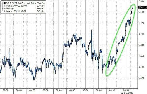 週一,紐約商品交易所 12 月交割的黃金期貨合約結算價上漲 69.30 美元,漲幅 1.9%,至每盎司 3775.10 美元,創下主力合約有史以來的最高收盤價。根據道瓊斯市場數據,這是黃金價格今年迄今第三十六次刷新收盤紀錄。週二,紐約期金突破 3800 美元/盎司,續刷歷史新高。