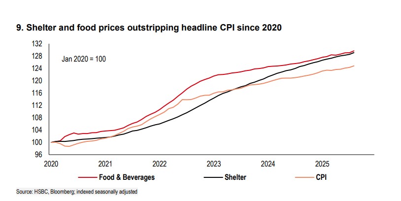 通脹壓力:食品、飲料及住房等 “非可支配” 項目的通脹率遠超總體 CPI。