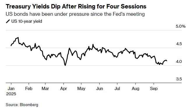 U.S. Treasury bonds are on track for their first increase in five trading days, as traders anticipate that upcoming remarks from Federal Reserve officials may signal a potential interest rate cut. Currently, yields on U.S. Treasuries across various maturities are generally declining, with the 10-year Treasury yield falling to 4.13%. There is a high level of uncertainty regarding the Federal Reserve's future policy path, and investors are seeking clearer directional signals. Attention is turning to the upcoming PMI, GDP, and PCE data for evidence of a weakening U.S. economy