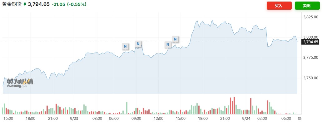 黃金期貨價格再創歷史新高,接近 3800 美元/盎司,因市場預期美聯儲將進一步降息,資金持續流入黃金市場。9 月交割的黃金期貨收漲 1.1%,報 3780.60 美元/盎司,白銀期貨也上漲 0.9%。美聯儲主席鮑威爾暗示可能會有更多降息,市場預計 10 月和 12 月各降息 25 個基點。黃金今年已上漲 40%,是自 1979 年以來的顯著年化漲幅,需求受美國政策不確定性和地緣政治影響。