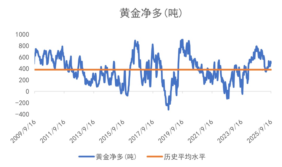 The long positions of U.S. gold funds fell by 3% week-on-week; short positions fell by 0.4% at the same time, resulting in net long positions dropping from 518 tons to 499 tons, marking the 102nd consecutive week of net longs (previously there were 46 consecutive weeks of net longs), which is also 55% of the historical peak of 908 tons in September 2019. As of September 16 this year, the dollar gold price has accumulated a 40.5% increase this year (last week +38.1%), while the long positions of funds have decreased by 1.4% during the same period (last week +1.7%).