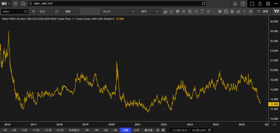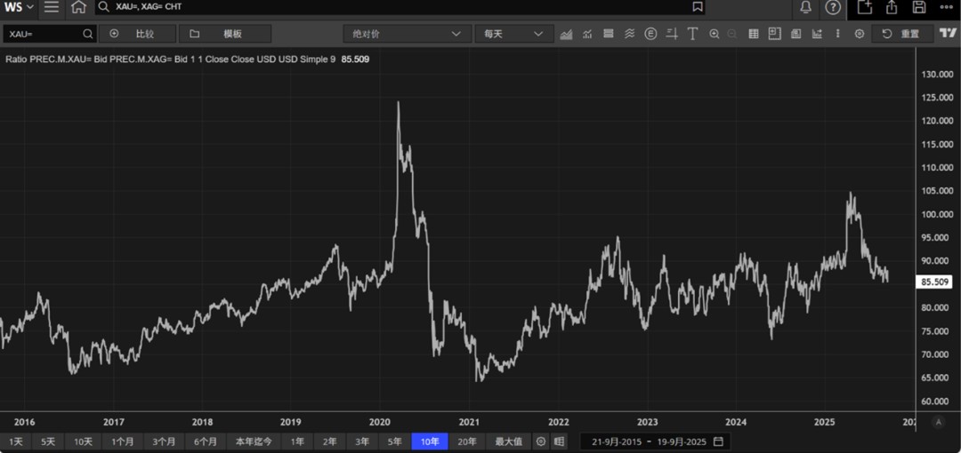 The gold-silver ratio is one of the indicators measuring market sentiment. Historically, the gold-silver ratio has operated at levels of approximately 16-125 times: