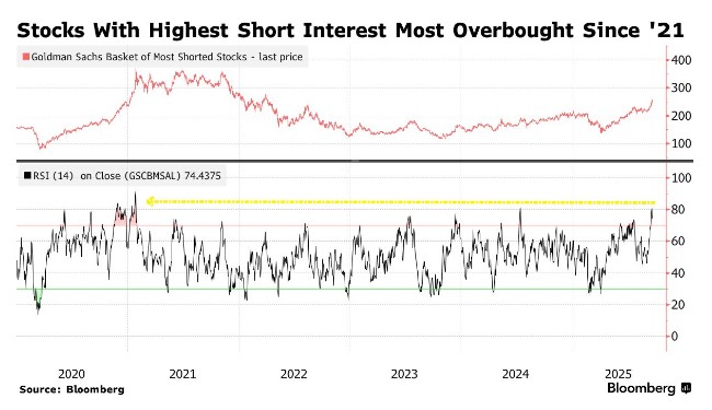 According to data dating back to 2008, a basket of the most shorted stocks compiled by Goldman Sachs has surged 14% this month to date, far exceeding the S&P 500 index's 3% increase during the same period, and is on track to achieve the best September performance for this basket index since 2010. This phenomenon suggests that some investors are choosing to cover their short positions ahead of the Federal Reserve's interest rate decision announcement Currently, the 14-day Relative Strength Index (RSI) of this basket index has risen to the most severe overbought level since the peak of the "meme stock craze" in early 2021. At that time, retail traders had driven several stocks to experience drastic fluctuations without any apparent logical support. Generally speaking, such overbought levels indicate that the risk of a short-term price correction is approaching.