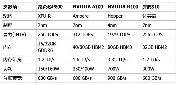 From the paper specifications, the Kunlun Chip P800 has a very prominent advantage, which is excellent power consumption control, with a power consumption of 150W to 160W, far lower than its competitors. This means that when building large-scale clusters, energy consumption and heat dissipation costs will be more advantageous.