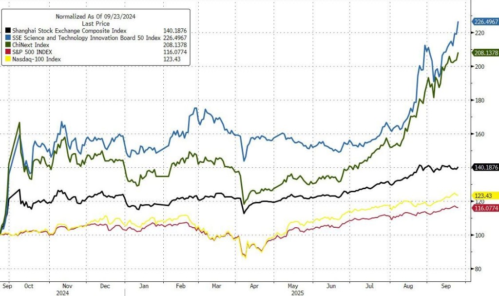 去年 9 月 24 日,中國人民銀行、金融監管總局、證監會聯合出台一攬子金融政策,旨在穩定市場和提振經濟,引發資本市場強烈反響。當時,億萬富翁對沖基金創始人 David Tepper 曾高呼“買入一切中國資產”。一年後的今天,他的判斷被證明是對的,中國資產在此期間經歷了一輪全球矚目的強勁牛市。