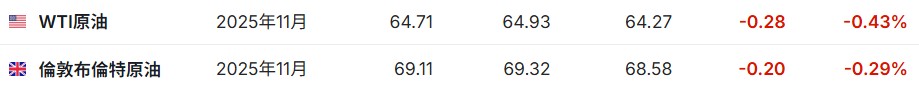 3. 截至發稿,WTI 原油跌0.43%,報 64.71 美元/桶。布倫特原油跌0.29%,報 69.11 美元/桶。