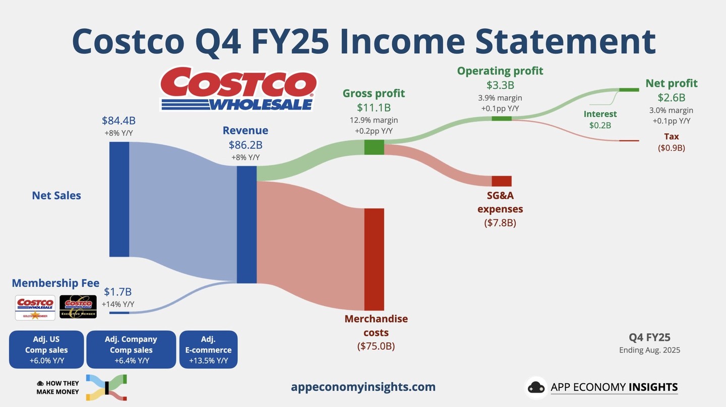 On September 25th, Eastern Time, Costco announced its financial data for the fourth quarter of fiscal year 2025 (ending August 31, 2024).