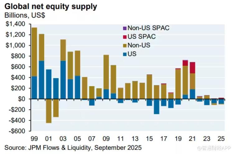 However, Michael Cembalest, chairman of the Market and Investment Strategy Group at JPMorgan Asset Management, recently pointed out in a report that a more overlooked factor may be driving the long-term rise of the U.S. stock market: the imbalance of supply and demand in the stock market.