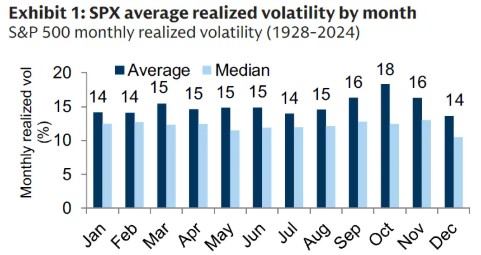 Goldman Sachs' derivatives team stated that since 1928, the historical price volatility of the S&P 500 index in October has been about 20% higher than in other months. In recent decades, this figure has been even higher, as the fourth quarter typically sees a large number of favorable corporate announcements. Additionally, historical data from the bank's derivatives team shows that from August to October, the actual volatility of the S&P 500 index increased by 26%.