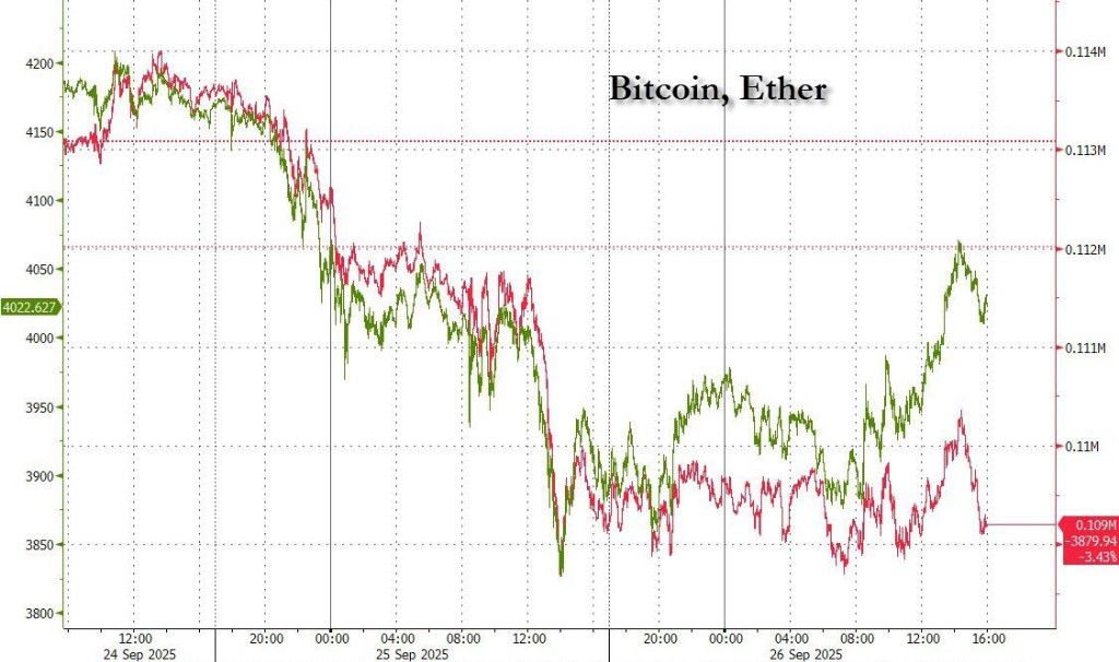 美債收益率漲跌不一,2 年期跌 1.43 基點、10 年期則漲 1.16 基點。數據後美元指數持續走低,比特幣變動不大,以太坊則反彈 3%。現貨黃金較日內低點一度漲超 48 美元,原油則衝高後大幅度回落。
