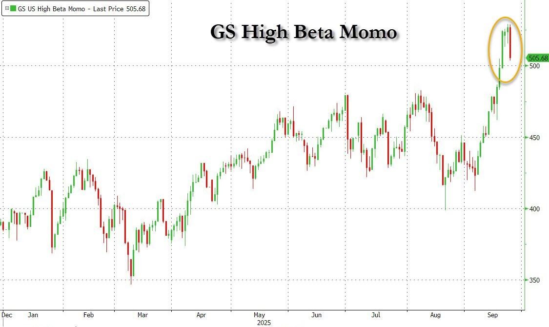 在高盛資深交易員 Bobby Molavi 看來,當前市場呈現出一種矛盾的狀態:一方面是指數層面的亢奮情緒,另一方面是客户持倉並未完全匹配這種表面繁榮。Molavi 警告,種種跡象表明,上週可能就是這波反彈的頂部,而本週市場出現回調的跡象。 換句話説,短期派對最熱鬧的時刻可能已經過去,現在是時候考慮風險了。