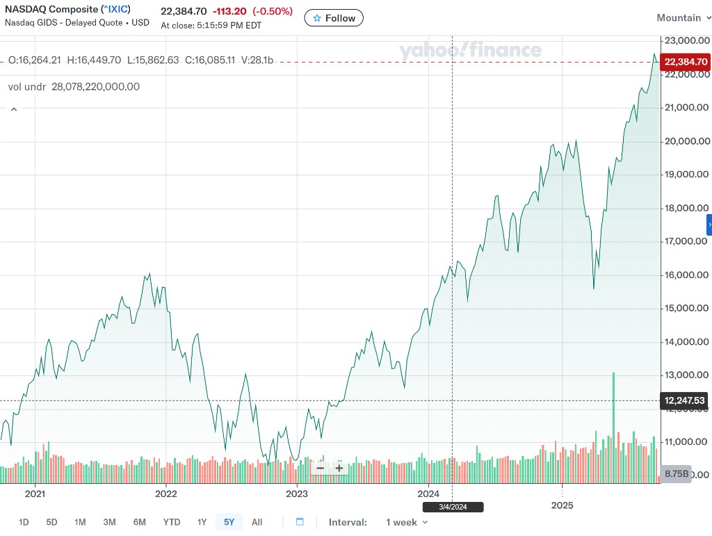 Molavi 認為目前是否處在科技泡沫中很難確定,納斯達克在過去 17 年中有 16 年都在上漲,累計回報率達到約 2250%。而且目前 5 大公司的 PE 倍數為 28 倍,相比歷史高峰時期的 40 倍 (2021 年) 和 50 倍 (2000 年) 還有一定距離。