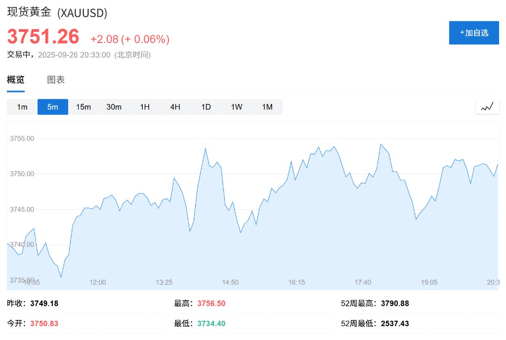 The yield on the U.S. 10-year Treasury bond fell slightly in the short term, currently reported at 4.158%. Spot gold rose about $6 in the short term, currently reported at $3755.53 per ounce.
