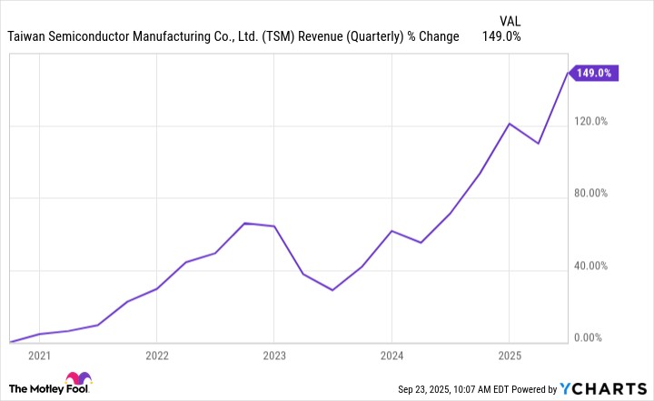台積電長期以來一直是一個令人印象深刻的賺錢機器,但在過去幾年中,它的表現有了很大提升。在第二季度,它的收入達到了 300 億美元,同比增長 44%,比第一季度高出近 18%。如果其第三季度收入在 318 億美元到 330 億美元之間,如其預測的那樣,這將代表 35% 到 40% 的同比增長。